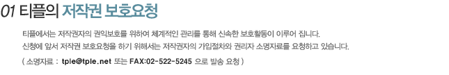 °í°´¼¾ÅÍ : 1688-8474 | »ç¾÷ÀÚ : 271-88-00463 | ÀúÀÛ±Ç/û¼Ò³â/Á¤º¸º¸È£ Ã¥ÀÓÀÚ : Á¤Å¿¬ ´ëÇ¥ÀÌ»ç | ÀúÀ۱Ǻ¸È£ ¿äû¸ÞÀÏ : tple@tple.net